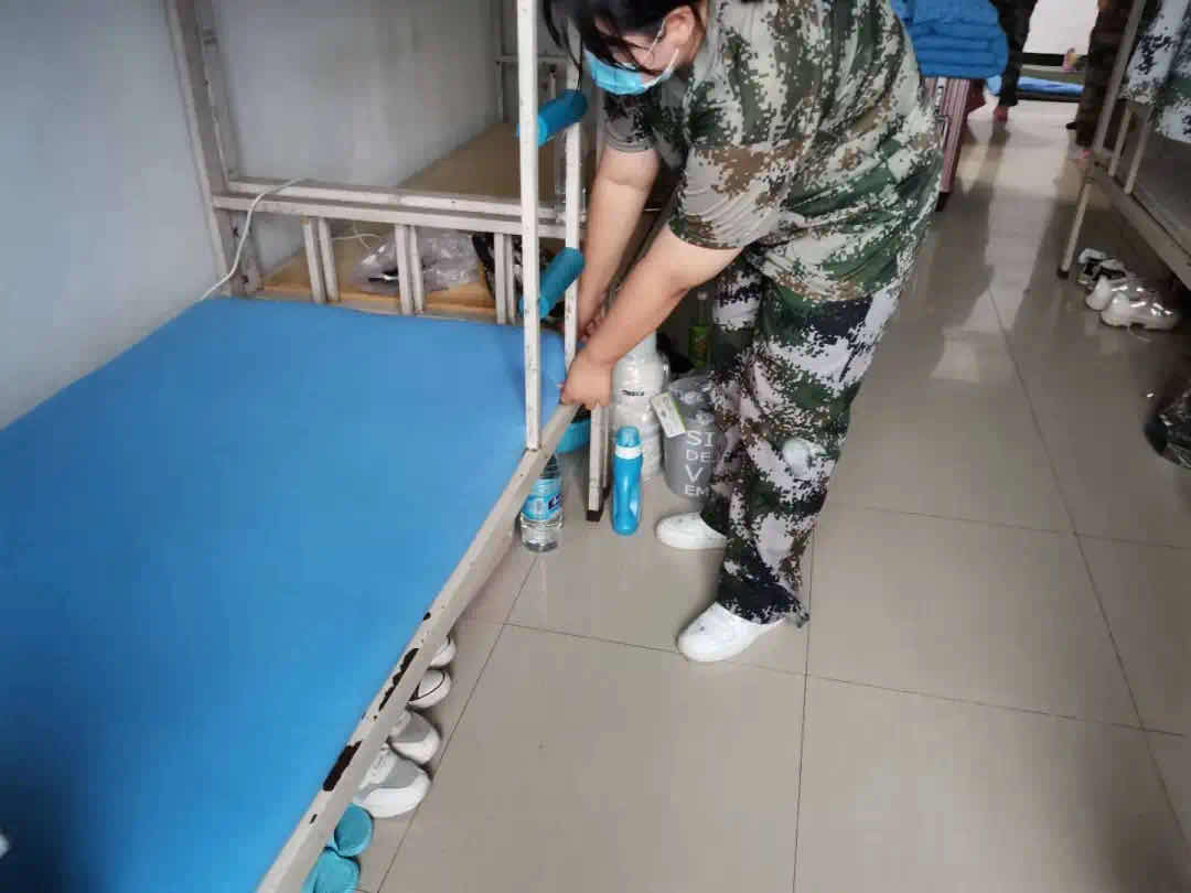 教官言传身教、强调细节,根据铺床叠被、物品摆放、清理死角等环节认真地指导同学们,使宿舍环境焕然一新。同学们从被动的打扫逐渐转变为主动的清理,好的卫生习惯在潜移默化中慢慢养成。“出门看队伍,进门看内务”耐心细致地清扫,每一个角落都不落下,为的是呈现一个一尘不染的寝室!