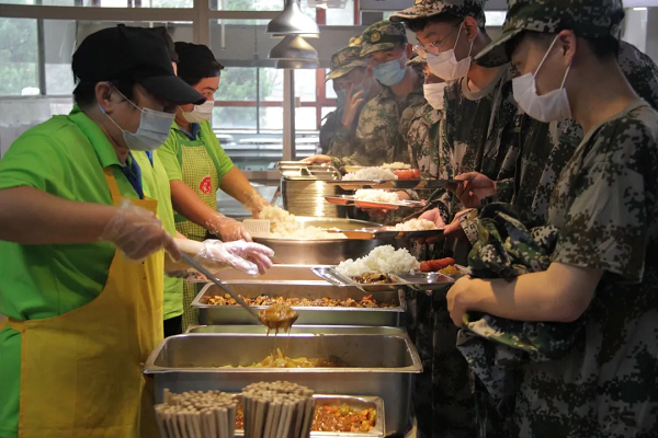 饮食服务供应是后勤保障的重中之重,严把食物进货,针对训练强度制定相关食谱,丰富菜肴品种。及时听取参训学生意见确保餐饮质量和安全,在安全这方面食堂做得相当到位,进门之前有专人测量体温,还有免洗洗手液,大大的节省了洗手的时间。很多同学认为洗衣服是一种苦恼,洗衣房里低调奢华的“小转筒”,为学生们带来了方便。为了能够圆满地完成军训期间的交通运输保障工作,以保证绝对安全。在军训期间,一辆作为巡逻用车24小时全天候待命。发生情况保证第一时间到达现场。 每天训练结束回到寝室之后,我们都会看到寝室老师热情的笑脸,寝室老师每天点名,查寝,测量体温,报修,细心料理着学生们的生活起居,为同学们营造了温馨的居住环境,缓解了军训的疲惫。