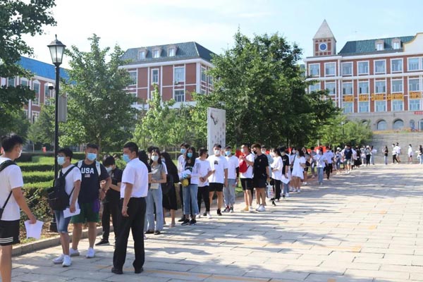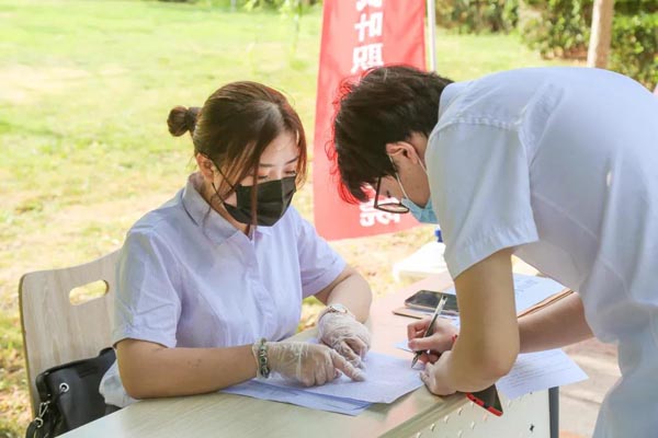 全体监考老师和考务人员履职认真,考生状态良好,整个考试过程严谨有序。中午学院为考生们准备了丰盛可口的午餐,按照防疫要求,学生们全部分桌就餐。下午进行的是部分专业的体检面试环节。