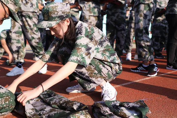 军训的成果就是让同学们文能叠军衣,武能打军体拳。