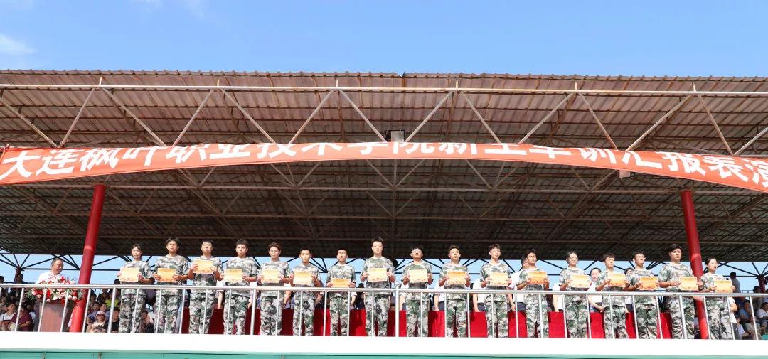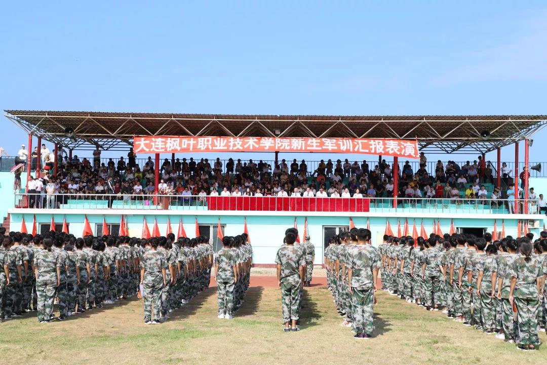 8月8日上午8:00,大连枫叶职业技术学院2019年第一批新生军训汇报表演在学院运动场胜利召开。同学们用整齐的步伐、雄壮的口号、飒爽的英姿、磅礴的气势展现了枫叶学子的精神风貌。
