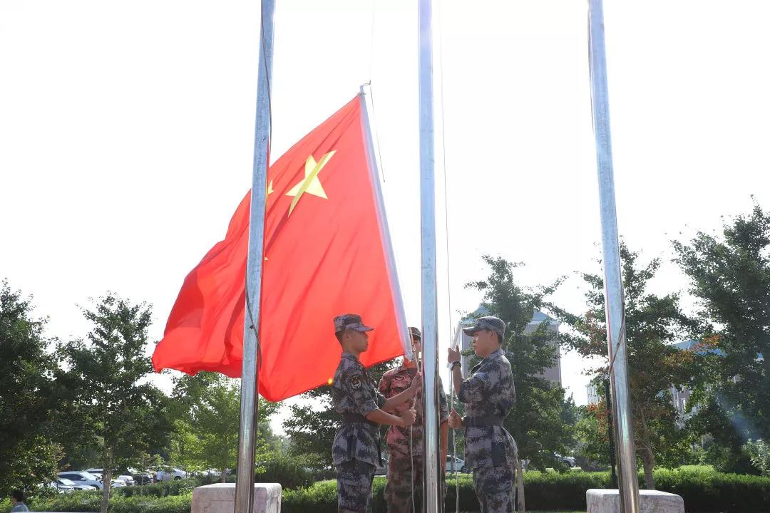 旗杆伫立而不锈,旗面艳艳而不泛黄。各位同学身负朝阳一般的热情,朝向希望,前进。