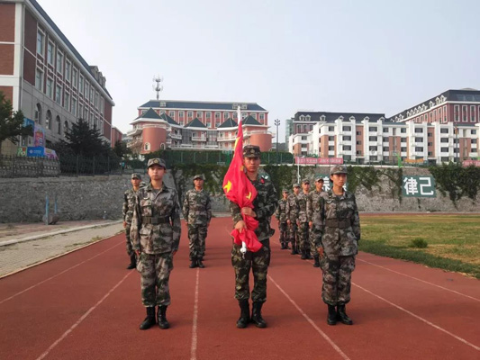 7月29日早上6:30,在大连枫叶职业技术学院运动场举行升旗仪式。这也是新生军训开营以来的第一次升旗仪式。伴着嘹亮的口号声,仪式正式开始。