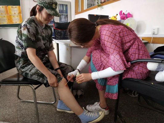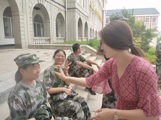 这是胡老师第一次军训带班,对她来说很有新鲜感,但更是一次挑战,总结一句话就是“痛并快乐着”。军训已经过去五天,军训的精神已然融入了新生的血液。谈及带军训的感受,胡英博老师说,第一天军训集合,班级就像一盘散沙,集合速度很慢,教官下达的通知需要反复强调才开始执行,但几天过后同学们的纪律性明显加强了,看到学生们的成长,她非常的欣慰。