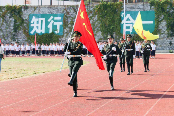 2018级新生们在烈日下一遍遍地踏着正步,苦练军姿、正步、分列式、军体拳、手语操等训练科目。历经十五天的涅槃蜕变,新生们终于迎来成果检验的时刻。汇报表演在雄壮的国歌声中拉开帷幕。旗手迎着灿烂的朝阳,伴着慷慨激扬的进行曲,迈着坚定而整齐的步伐入场。在全场的注视下,鲜艳的五星红旗冉冉升起。
