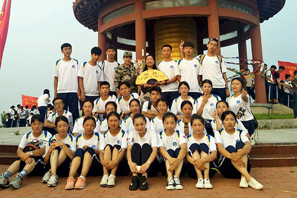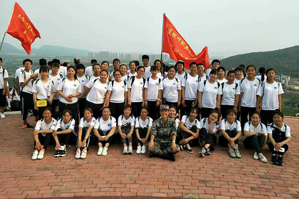 到达目的后,军训班级集体合影留念(一)