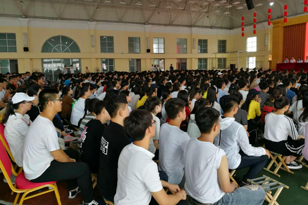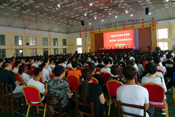 2017年7月9日8:40,大连枫叶职业技术学院2017首批新生军训动员大会在我院综合馆顺利召开。学院副院长解建国、团委学生处/保卫处处长高成林、教务处副处长裴丽琳、财经商贸系主任林晓慧、副主任徐凤龙、工程技术系主任王晓琳、副主任刘姜青、现代服务系主任于庆霞、副主任闫博、中职部主任赵坤坤作为嘉宾出席大会,团委学生处/保卫处处长助理吕运福主持会议。