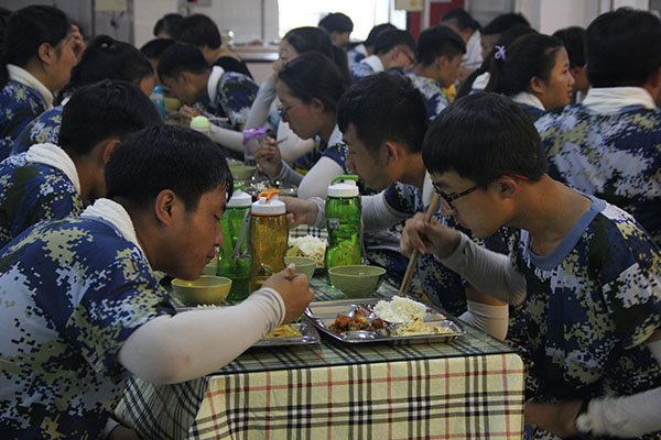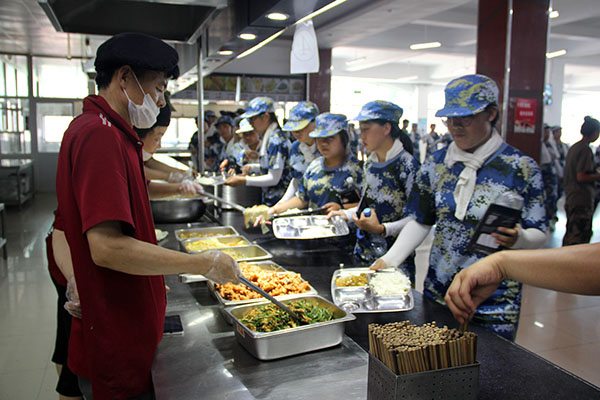 秩序井然 文明就餐—记我院17级新生军训之养成性教育(一)