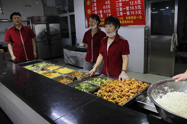 食堂工作人员早已准备就绪,用丰盛的菜肴迎接同学们的到来