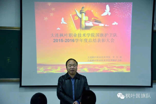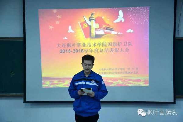 为总结经验,查找不足,使国旗护卫队发挥更大的作用,学生处于2016年3月28日18:30,在学院2号教学楼6楼多媒体教室,举行2015--2016学年度第一学期国旗护卫队总结表彰大会,学生处吕运福老师、赵坤老师应邀出席了会议。