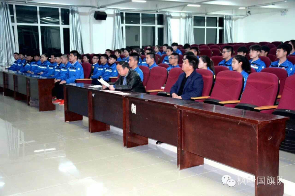 大会在全体队员站立齐唱国歌声中拉开序幕,国旗护卫队队长杨淇智做了第一学期的工作总结,杨淇智说:相聚于国旗下的我们,在过去的一年里精诚团结,披荆斩棘,始终保持着“行事如风、纪律至首、刻苦训练”的队风队貌,工作中取得了一个又一个的成绩,得到了学院领导的高度认可。新学期任重而道远,让我们齐心协力,共同谱写国旗护卫队发展的新篇章。护卫队指导员林青闯宣读了优秀带队干部和优秀部员的获奖名单。队员刘航志代表所有队员发言,他感谢学院国旗护卫队给自己提供了一个奋发向上的平台,护卫队也圆了自己的军装梦,新的一年会更加珍惜荣誉,在本职岗位上做出更大的成绩。