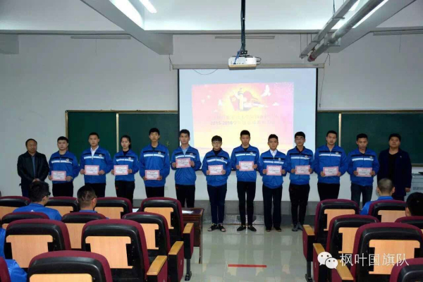 吕老师、赵老师分别给获奖的队干部和队员颁奖,对国旗护卫队为学校发展与建设做出的贡献表示感谢,护卫队是一个特别能吃苦、特别能战斗的一个组织,它不同于学校的其他社团组织,它始终以任务为牵引,以为学院争光、为国旗添彩为己任。每个队员都要把爱国的热情,传播到了校园的每个角落,国旗护卫队的队员虽不是真正的军人,却已拥有了军人般的钢铁意志!希望你们在未来的日子里,多传递一些正能量给身边的每一个同学,让我们的校园更加文明、和谐。