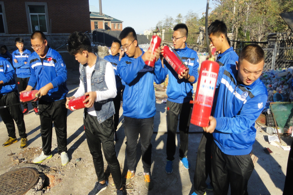 为做好校园安全预防工作,提高师生的安全自救本领,学生处于2015年10月12日下午15:00,在男寝4号楼前为15级的班长和安全员做了一场灭火技能培训和模拟火场灭火演练,培训由学生处李越龙老师主讲,学生处吕运福老师、鞠永俊老师、保安队长钱库及40多名15级班长、安全员一同参加了培训。