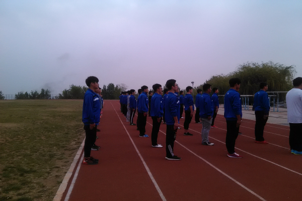 5月7日早06:50分,运动场内50名学生教官在教官白杨、杨祺智的带领下,正在进行军姿训练,这是学院为完成2015级入校新生军训任务而储备的军训教官,经由各系选拔的50名学生教官,是由复员军人和学生会干部组成,他们经过层层选拔,从3000多名同学中脱颖而出,他们将代表各系来接受挑战。集训从5月4号已拉开序幕,这是笔者采集的集训班早训的几幅图片。集训在进行,学生在进步,请关注集训班的后续报道。