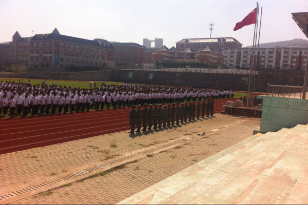 仪式结束后,教官们带领新生来到操场,他们铿锵洪亮的声音,扎实有力的步伐,使师生们肃然起敬,操场上掌声不绝,为期十二天的军训序幕正式拉开。