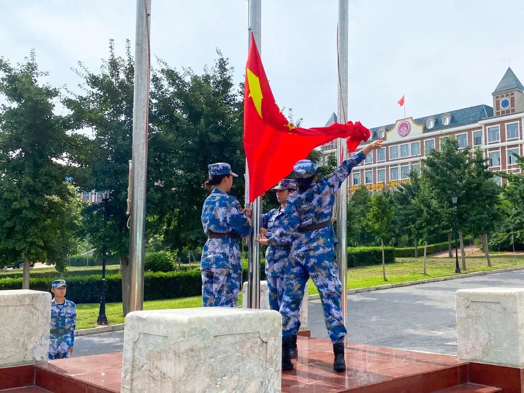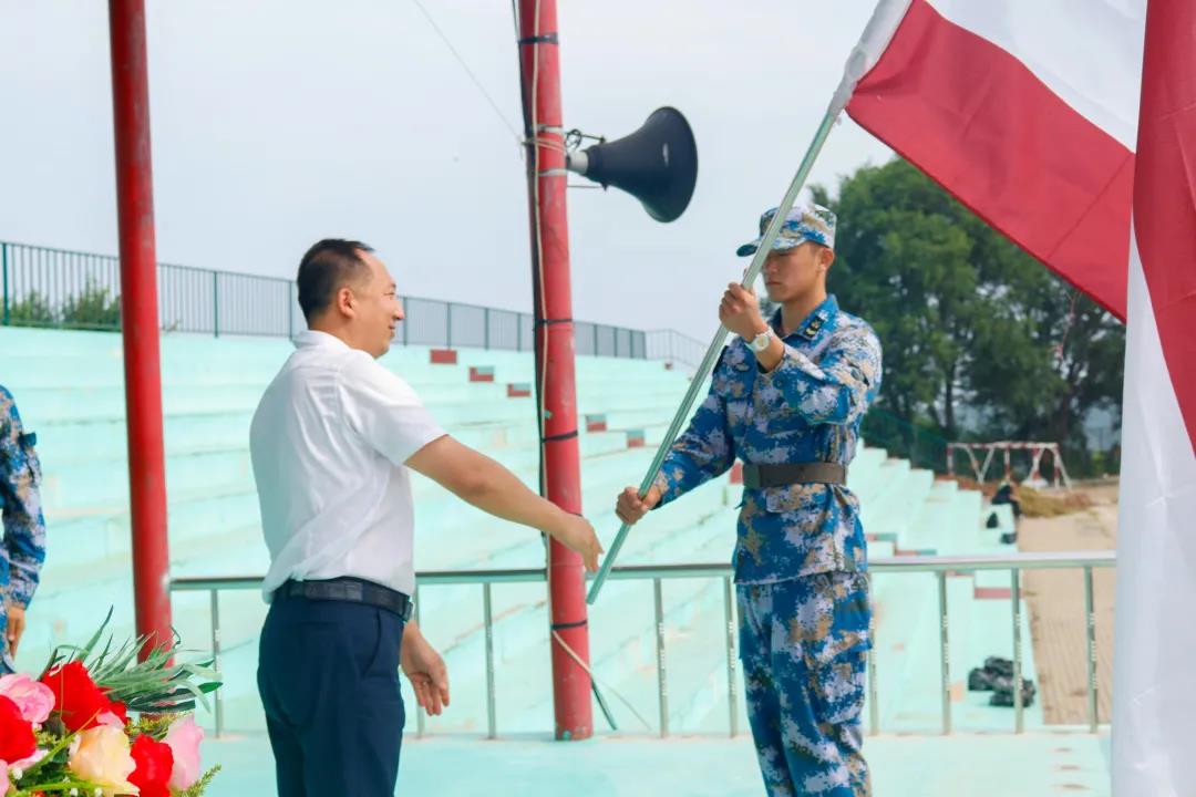 招生/就业副院长解建国向军训教官代表授旗,将军旗与意志传递。鹏程万里奋今朝,壮士豪情谱新篇。军训砥砺报国志,整装待发齐上阵。