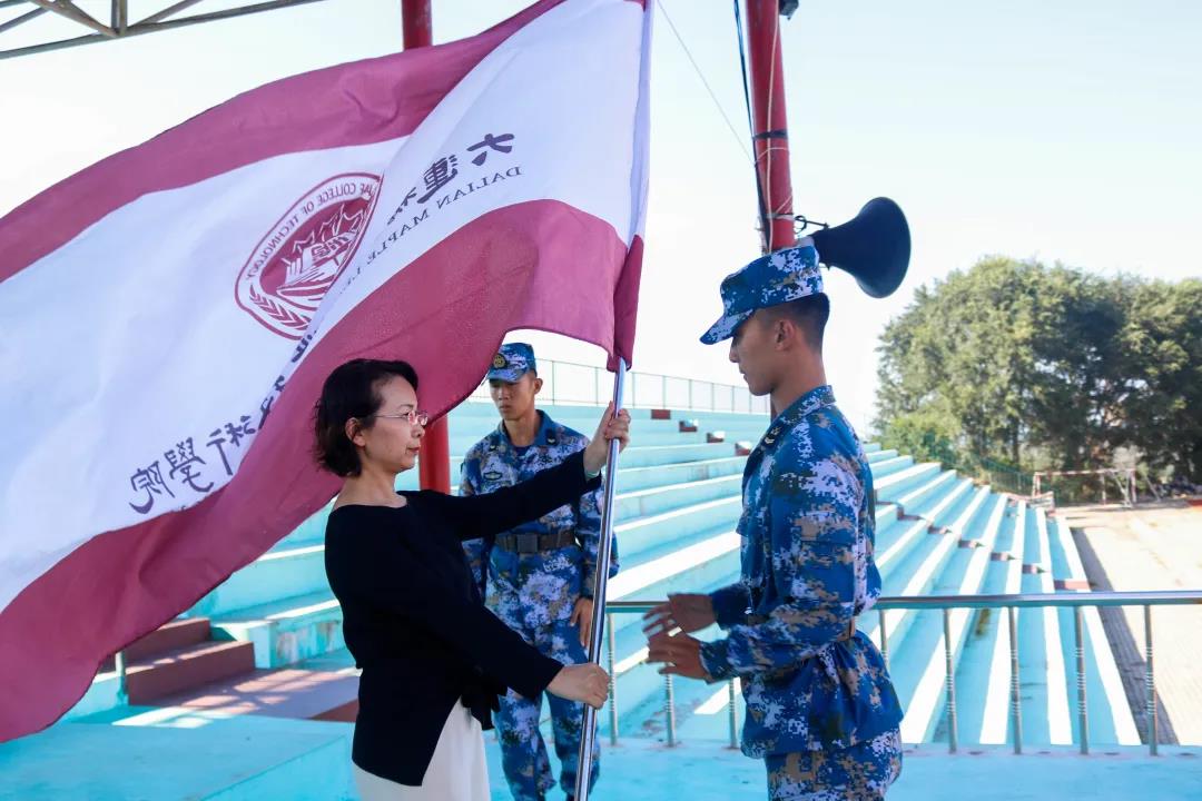 教学/学生管理副院长金晓晖向军训教官代表授旗,将军旗与意志传递。鹏程万里奋今朝,壮士豪情谱新篇。军训砥砺报国志,整装待发齐上阵。