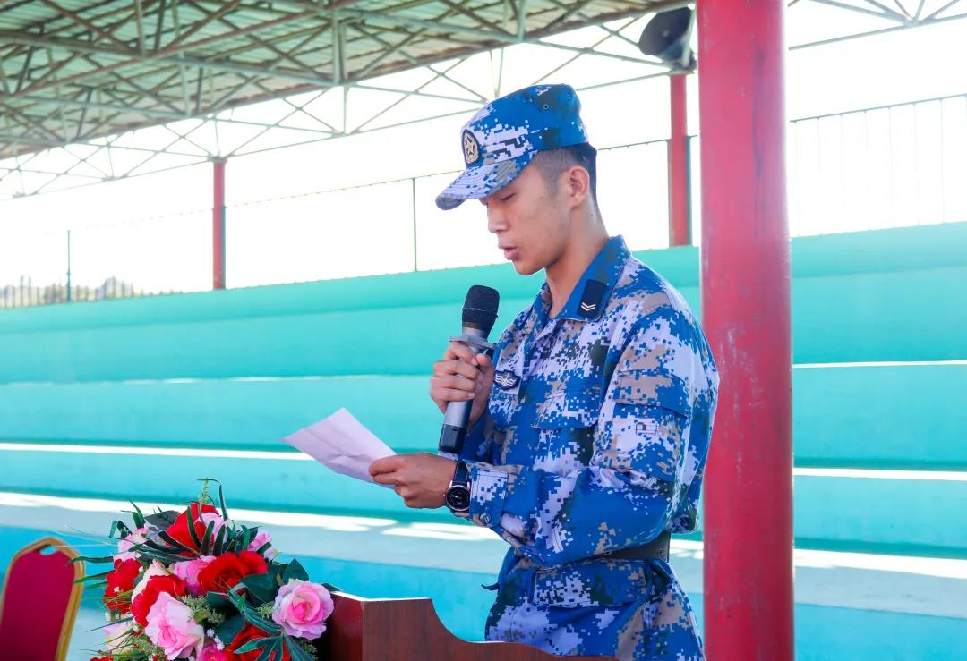 王海俊同学作为新生代表发言。他代表21级同学郑重宣誓,在军训中将严格要求自己,听从指挥、服从命令、严格遵守军训纪律,战胜困难、战胜自我,决不辜负老师和家长的期望。