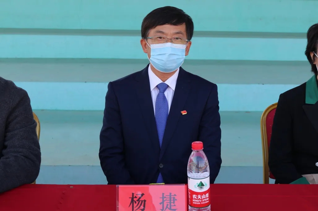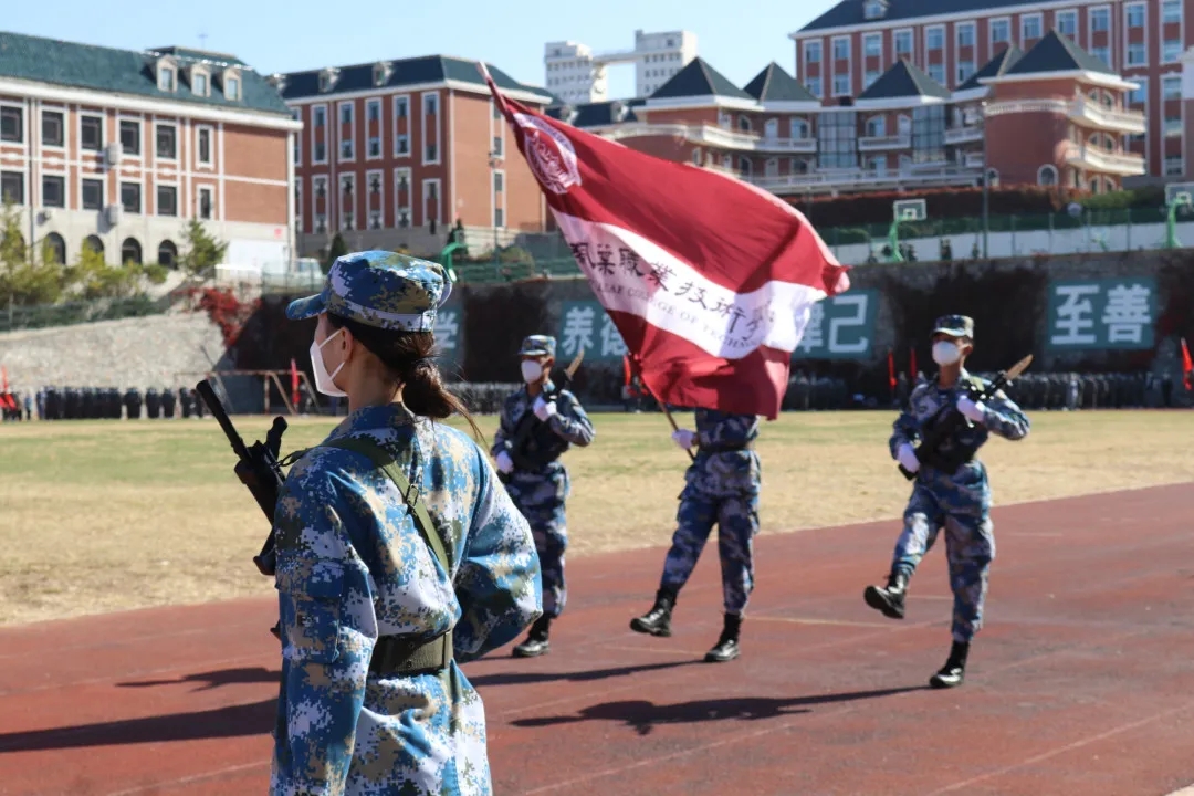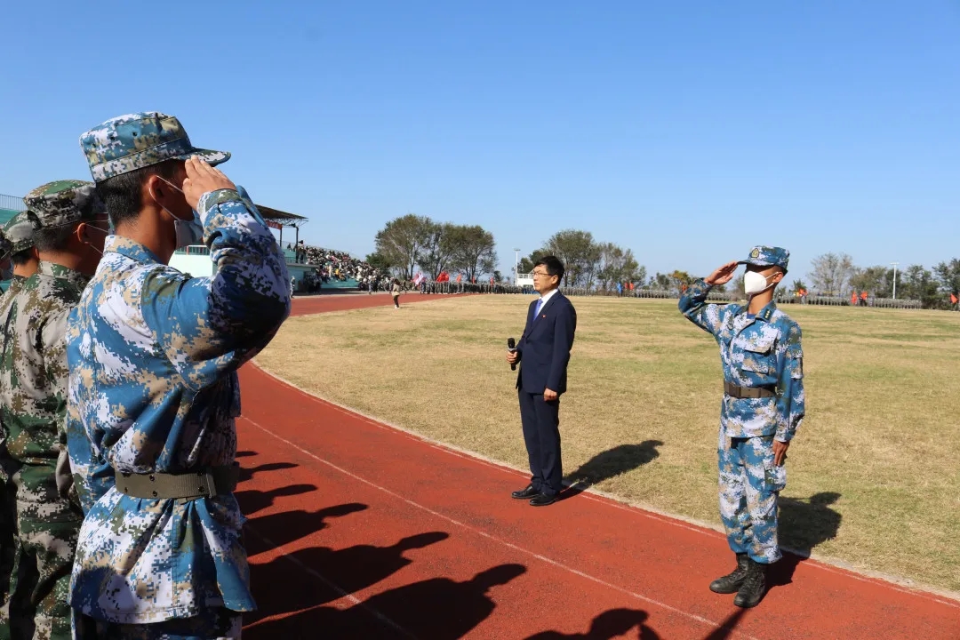 杨捷院长在总教官的陪同下检阅了方阵,杨院长亲切的问候得到了同学们热烈的回应,“同学们好!”“院长好!”“同学们辛苦了!”“为校争光!”