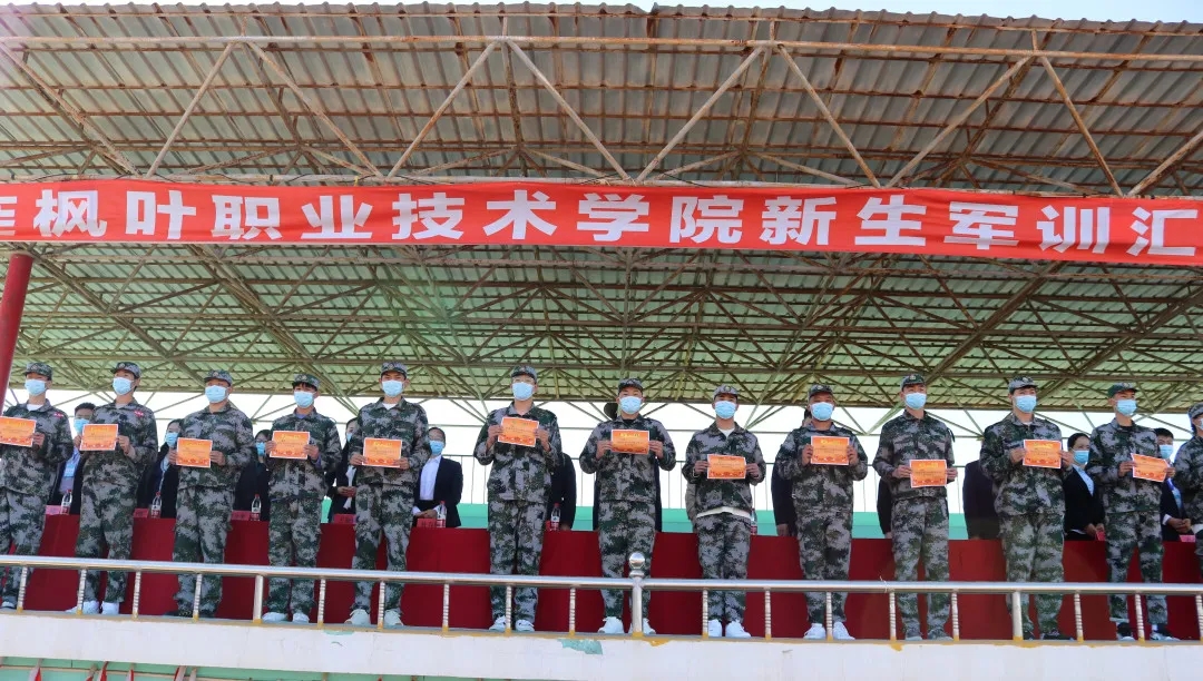 财经商贸系军训5班,和装备技术系军训37班,带来了军歌表演,歌声高昂嘹亮,歌颂激扬青春,展现了枫叶学子的爱国情结,彰显了新时代青年“爱党、爱国、爱军”的精神面貌与责任担当。