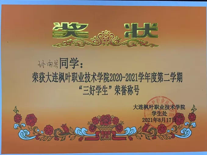 2020-2021学年,大连枫叶职业技术学院涌现出一批思想积极上进、学习成绩优异,在科研创新、文体活动、志愿服务等方面表现突出的优秀学生,为激励广大学子对标先进、见贤思齐,我院以党的二十大精神为指引,推出“踔厉奋发勇担当·枫叶榜样力量”特辑,展播2020-2021学年辽宁省政府奖学金获得者风采展示,讲述这些学生求学之路上的成长与收获。