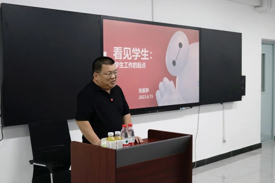 6月15日,教育部学校规划建设发展中心课程建设协同创新中心秘书长、齐齐哈尔工程学院副院长张振笋莅临我院,并为学工教师做了题为《看见学生——学生工作的起点》专题讲座。党委书记申秀梅、招生就业副院长解建国、教学学生管理副院长金晓晖、学生处/保卫处处长高成林、教务处处长张冬冬以及全体学工教师、辅导员参会。