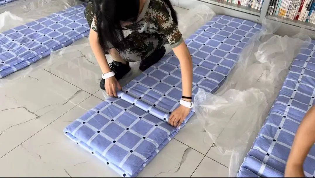 为检验军训良好成果,展现参训学生军训作风,引领学生树立正确劳动观,提升学生内务整理水平,8月1日下午,2023级军训内务技能大赛在图书馆举行。由各系部推选出的学生代表参加比赛,学生处老师共同担任评委。