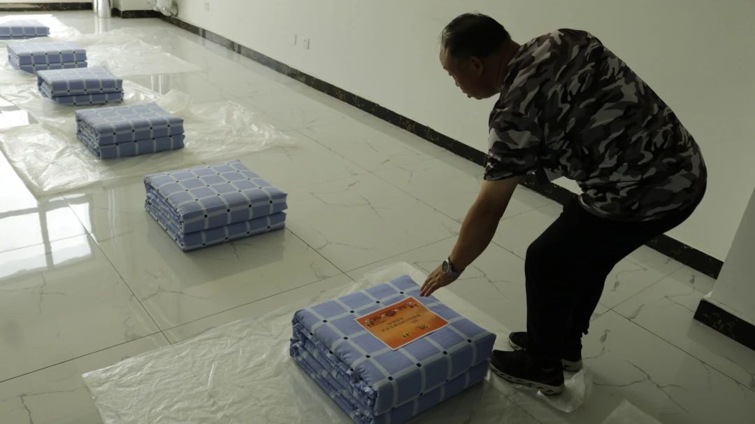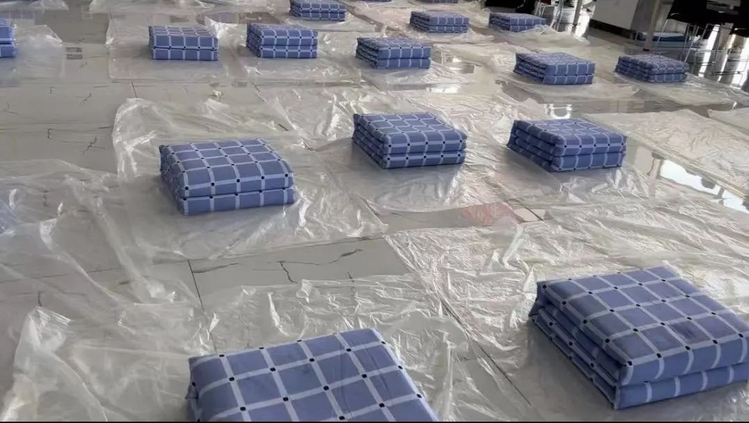所有选手蓄势待发,比赛开始,参赛选手迅速进入比赛状态,铺平、压实、翻折、抠角、捏线,简单的动作重复多次,整齐方正的被子迅速成型。选手们争分夺秒,各显神通,通过“折、压、磨、捏、修”等一系列动作来给自己的“豆腐块”凹造型。
