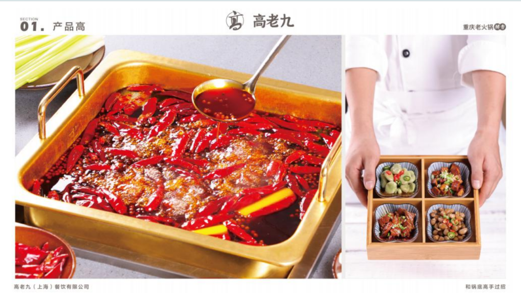 120年前中华美食名片重庆火锅起源于江边;100年后红汤以辣之名登顶中华火锅十大榜首;100年来,三代师承——高家班,百年锅底功夫代代相传 重庆高老九火锅诞生至今,一直坚持以“产品主义”为核心,传递地道重庆火锅的味道与文化。“三代人、一口锅”,秉持“百年技艺”始终为顾客守护着重庆火锅原初的美味 百年锅底,三大功夫:班底功夫——三代人代代传承,精心打磨,只为一口锅;选材功夫——专业选材团队,选在地食应季,好食材更入味;底料功夫:精选数十种材料,四小时熬制二次发酵,辣而不燥,醇香有回味。