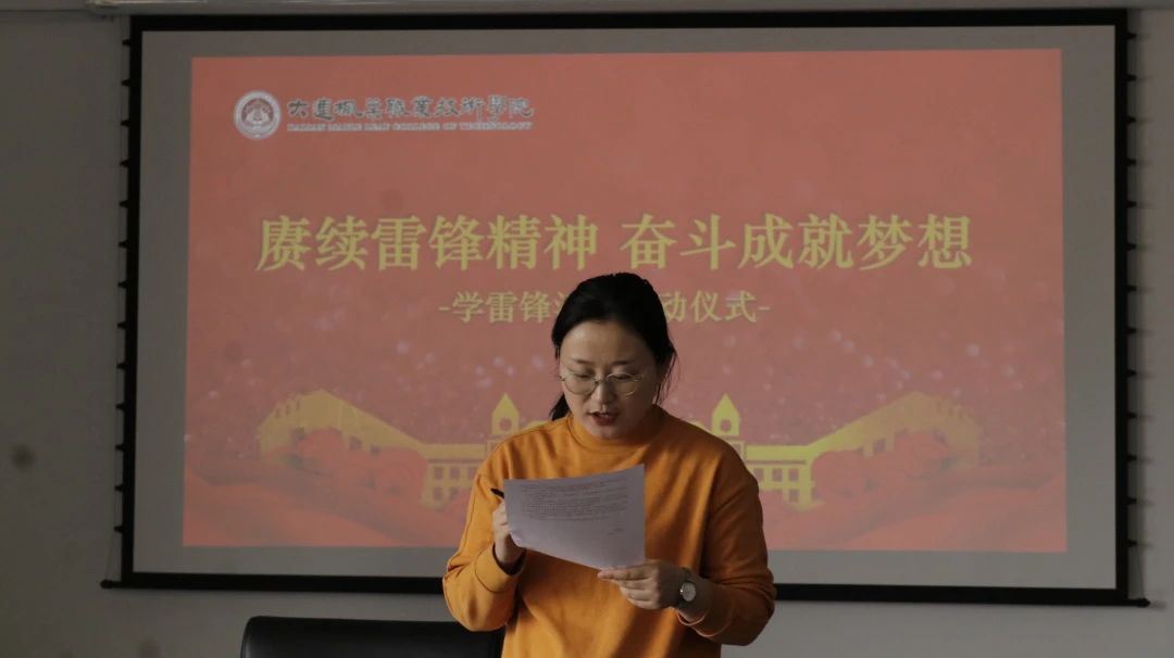 启动仪式第二项:团委书记宣读我校"赓续雷锋精神 奋斗成就梦想"学雷锋活动方案。