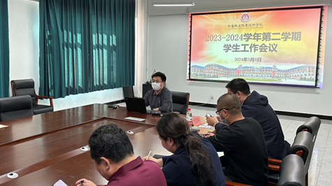 3月8日下午,我院2023-2024学年第二学期学生管理工作会议在4号教学楼6楼会议室召开。学生处处长王博主持会议,院长助理高成林、保卫处处长孙成军、各系校学生管理主任、学生管理干事及全体辅导员参会。