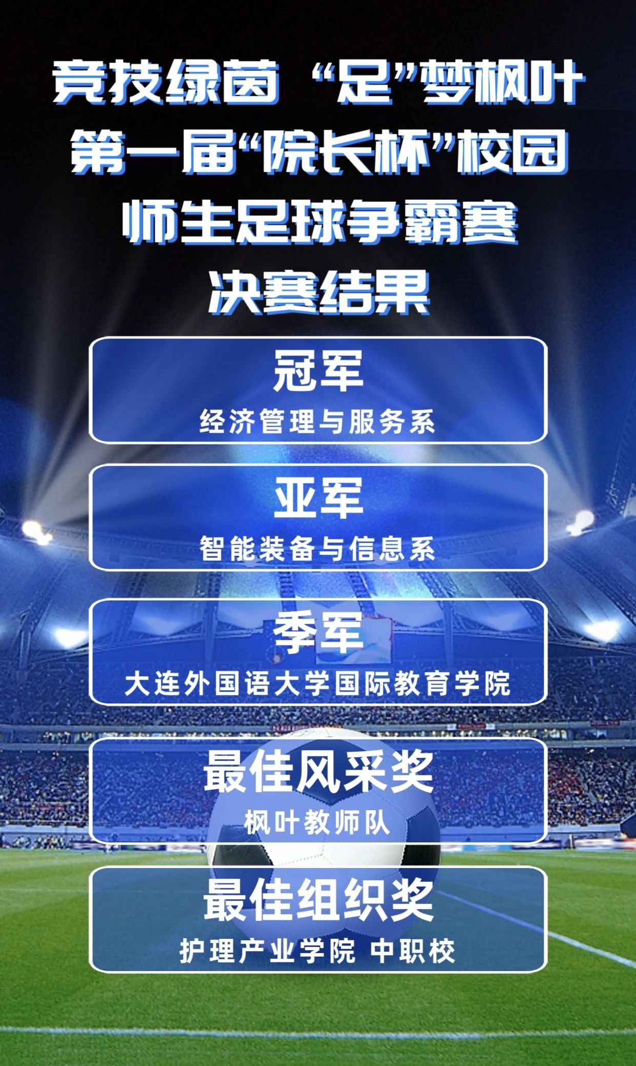 大连枫叶职业技术学院,第一届“院长杯”校园师生足球争霸赛于6月14日圆满落幕!