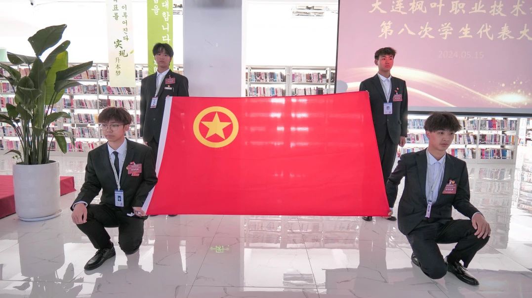 凝聚青春力量,共赴青春盛宴。5月15日,大连枫叶职业技术学院第八次学生代表大会暨第十四届校学生会换届选举大会在学院图书馆(5号教学楼)隆重举行。大会秘书长由校团委书记张明月、大会副秘书长/校团委干事杨婧、大会主席团成员范振恒、仪妍麟、李心阳、第七届学生委员会委员以及来自各院系共计120名学生代表出席大会。大会以习近平总书记关于青年工作的重要思想为根本遵循和行动指南,把握时代主题,勇于自我革命,服务同学成长,奋力推进我院学委会、学生会工作蓬勃发展。