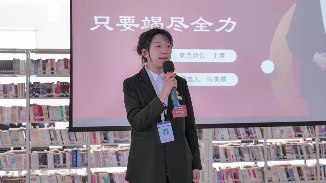 竞选演说中,54位候选人依次进行述职阐述,分享自己的学习成长故事,叙述自己对学生会工作的认识,分析如何开展工作,展现出校学生会成员自信阳光、有思想、有内涵的品质。全体候选人都用最真诚的语言、最饱满的姿态,向与会代表展现自己。