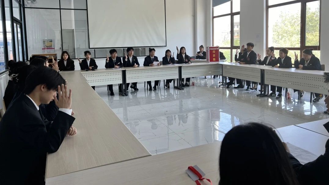 第八届学生委员会主席团、执行主席选举投票环节由总监票人叶亦函主持,监票人张津涵、黄永超分发选票。大会共收到正式代表选票40张,与到会正式代表人数相符,符合选举办法规定,选举有效。大会选举产生了大连枫叶职业技术学院第八届学生委员会主席团、执行主席名单。