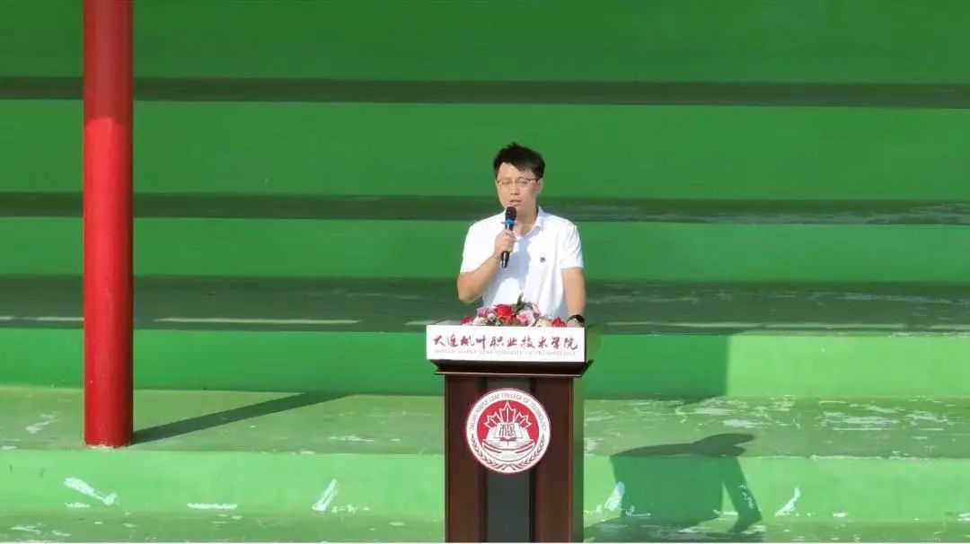 院长助理高成林致辞。他向全体2024级新生阐释了军训对于个人的身体素质以及思想培养的重要意义。最后他向全体2024级新生提出三点要求:第一,思想上要肯担重任、不辱使命。明白军训的意义及重要性,做到思想上绝对服从。第二,行动上要服从指挥、踏实训练。保持优良的作风、端正的态度。第三,过程中要科学训练,确保质量。训练、学习、生活保持规律的节奏,安全而且高质量地完成各项任务。