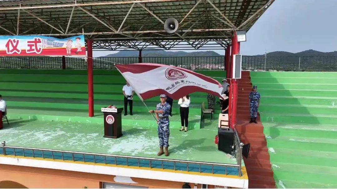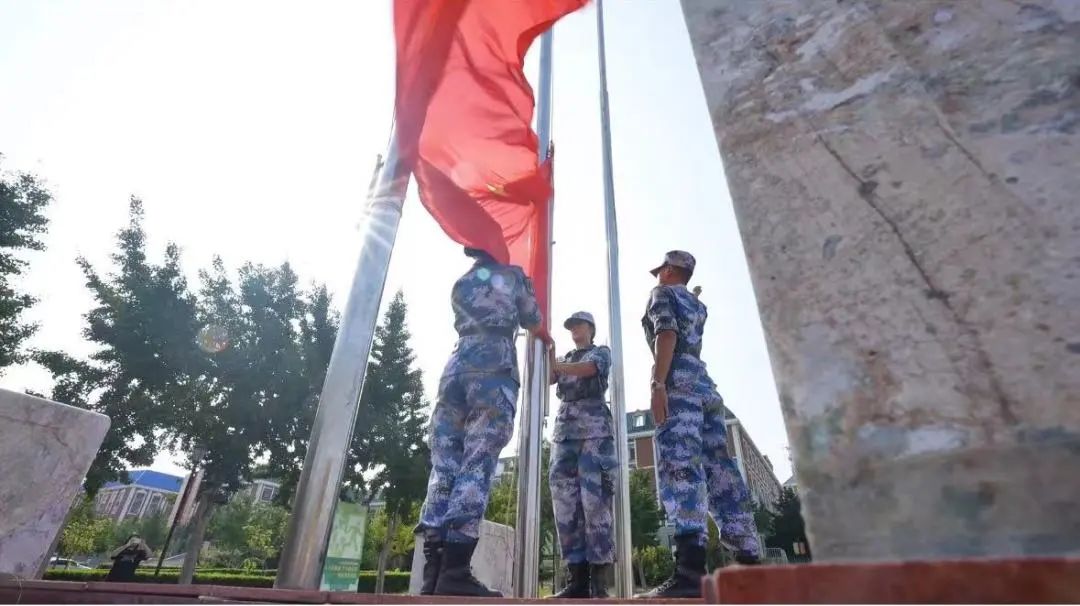 学院副院长张冬冬为教官代表授校旗,正式拉开军训的帷幕。