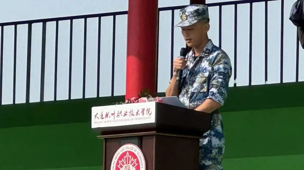 教官代表进行发言。他希望各位枫叶职院的学子能够成为意志坚强纪律严明的新时代学子,成为爱国敬业道德高尚的精英人才,成为身有书生气、行有英雄胆、动有猛虎威的热血青年。在军训中做到一是严守纪律,一切行动听指挥,坚决杜绝自由散漫;二是敢于吃苦,发扬不怕苦不怕累的精神,迎难而上,勇攀高峰;三是要团结协作,履行好作为集体一份子的责任和义务,彼此扶助、携手并进。