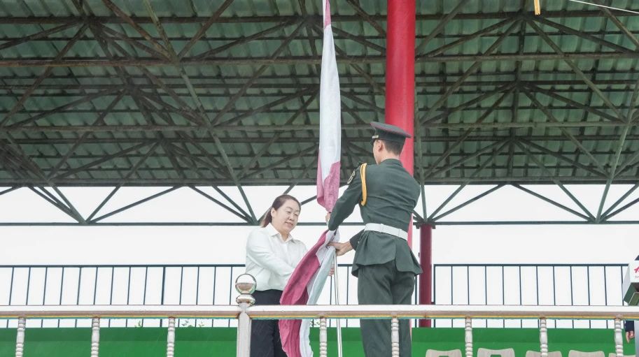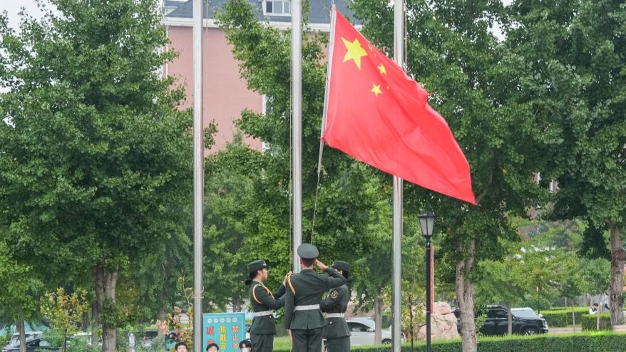 全体师生肃立,奏唱国歌,鲜艳的五星红旗冉冉升起。对国家尊严的礼赞,对民族精神的传承,拉开了七顶山校区2024级新生军训开营仪式的序幕。