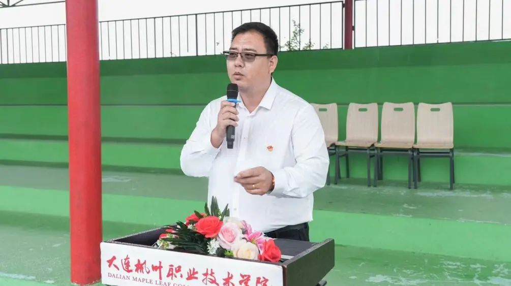 七顶山校区学生处处长姜占原宣布枫叶职业技术学院七顶山校区2024级军训教官任职决定,希望教官们服从命令,履行职责,坚守岗位,扎实工作,为圆满完成新生军训任务保驾护航。希望同学们通过军训磨砺心性、锤炼意志,传承中国军人的优良传统,用汗水和努力书写青春篇章。