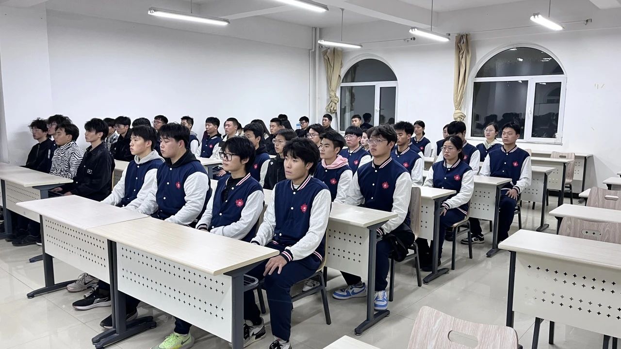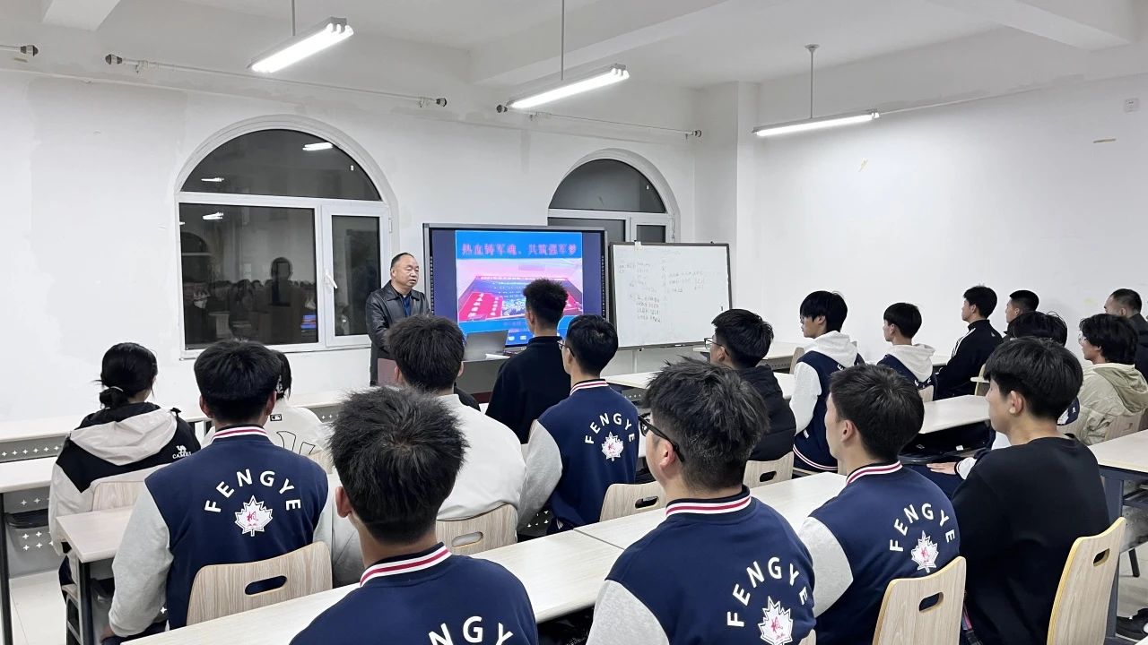 11月13日17时30分,在3号教学楼的2楼多媒体教室,保卫处吕运福老师为兵役班的同学们详细解读我国军人核心价值观——“忠诚于党、热爱人民、报效国家、献身使命、崇尚荣誉”的深刻内涵。吕老师在了解了同学们多样化的参军动机后,告诉同学们参军不仅仅是个人的选择,更是履行公民义务的重要体现。并且对每一位有参军想法的同学都进行了表扬和赞赏,因为同学们展现出了对国家和人民的责任感。