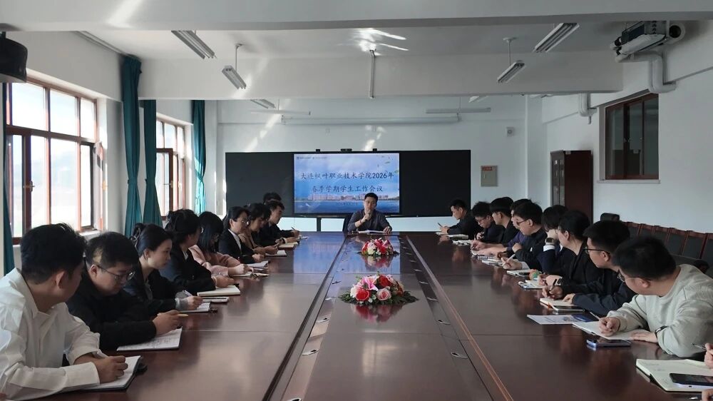 3月20日上午,大连枫叶职业技术学院大黑石校区2026年春季学期学生工作会议在4号教学楼625会议室召开。学工部部长王博主持会议,各二级学院学生管理副院长、学生工作干事及全体辅导员参会,会议围绕学生五项素养提升工作全面部署新学期学生工作重点。