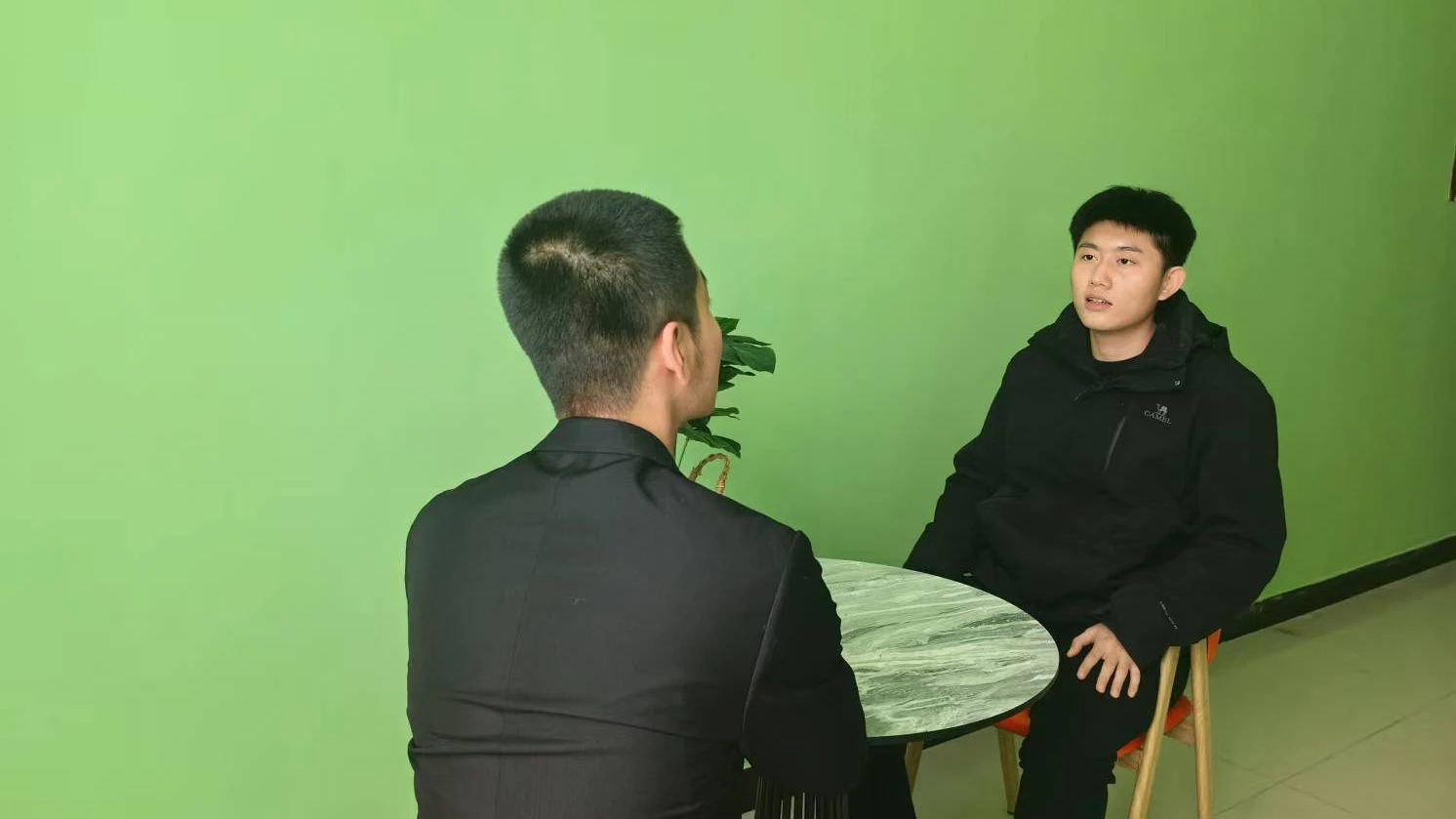 ▲社区辅导员荆韦臣与楼长谈话(一)