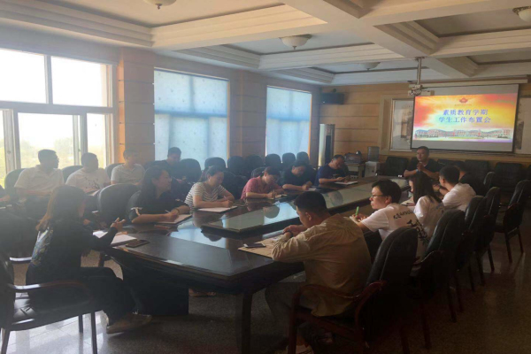 为明确工作任务,使接下来素质学期顺利开展,7月20日下午学生处组织召开2019级素质学期学生工作布置会,学生处处长高成林主持会议,所有学生工作老师、助理辅导员和军训教官参加会议。