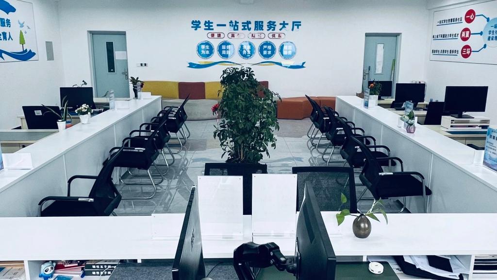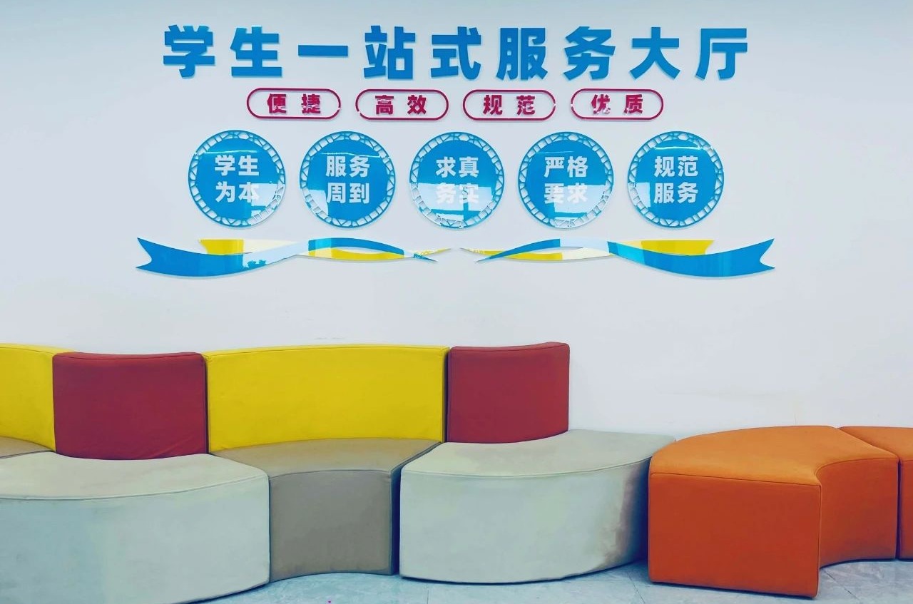 大连枫叶职业技术学院“一站式”学生社区学生事务服务中心主要用于学生咨询和办理相关事务,为学生提供学生证补办、征兵入伍咨询、医保商保咨询、学生资助咨询等便捷服务。