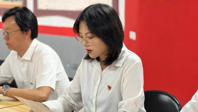 银雄宣读支部大会决议,并代表党组织对杨婧同志表达了祝贺,希望杨婧同志今后继续按照党员标准严格要求自己,在工作中挺膺担当,切实发挥党员的先锋模范作用。